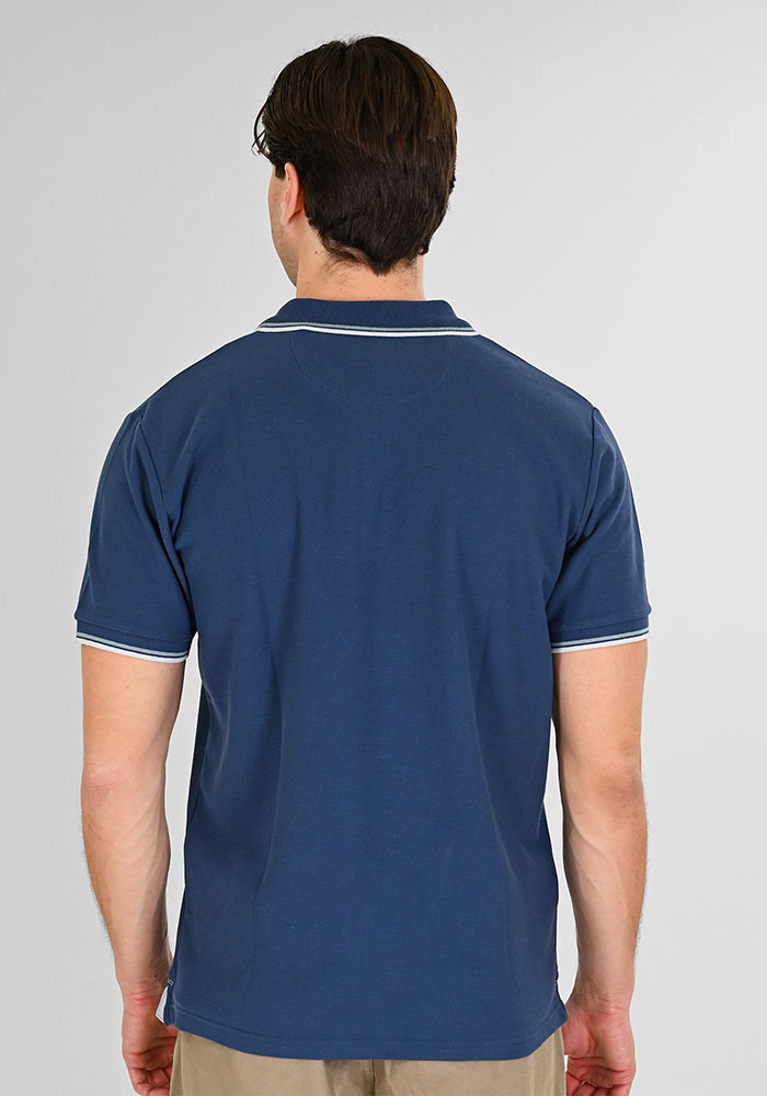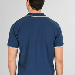 Ανδρική μπλούζα κοντομάνικη πόλο λεπτό πικέ με ρίγα σε συνδυασμό στο γιακά και στα μανίκια. Κανονική γραμμή. Συλλογή spring/summer 2026.